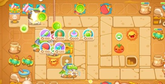 5.在左侧传送点下方建造三个满级乌龟,提升炮台等级。