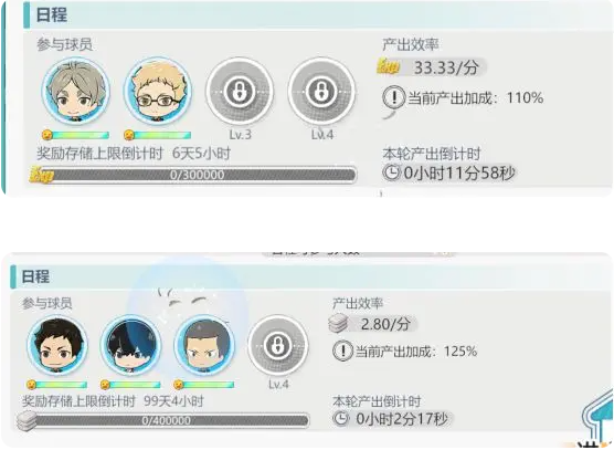 5.入驻日程安排的球员会花费一定的精力度,在精力度耗尽时无法为日程提供产出效率的加成。